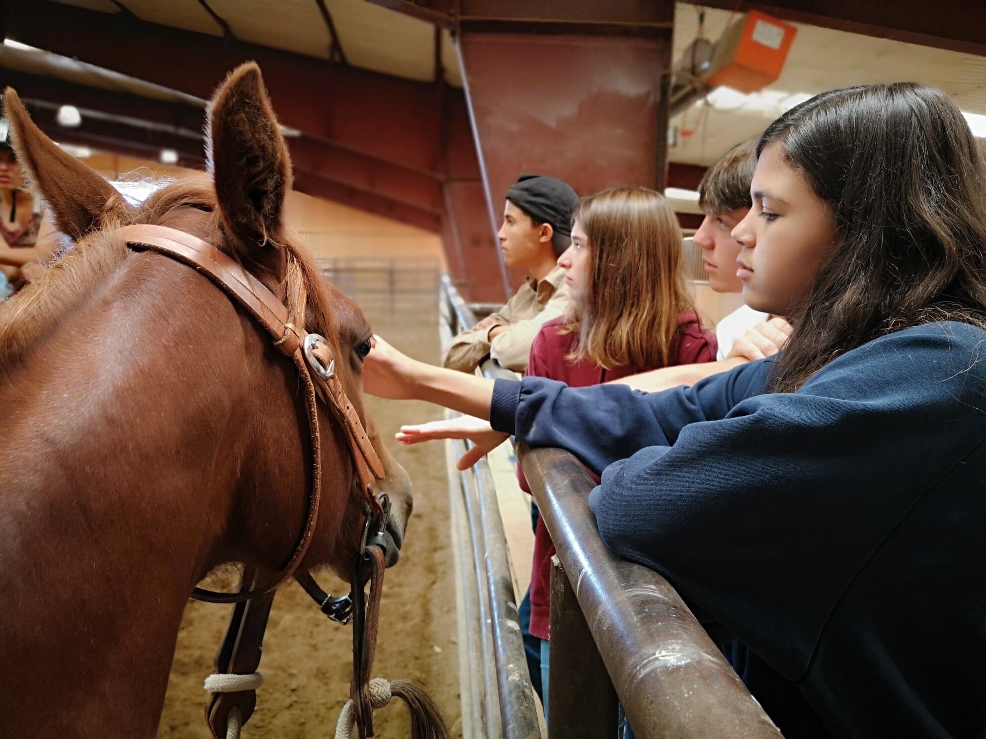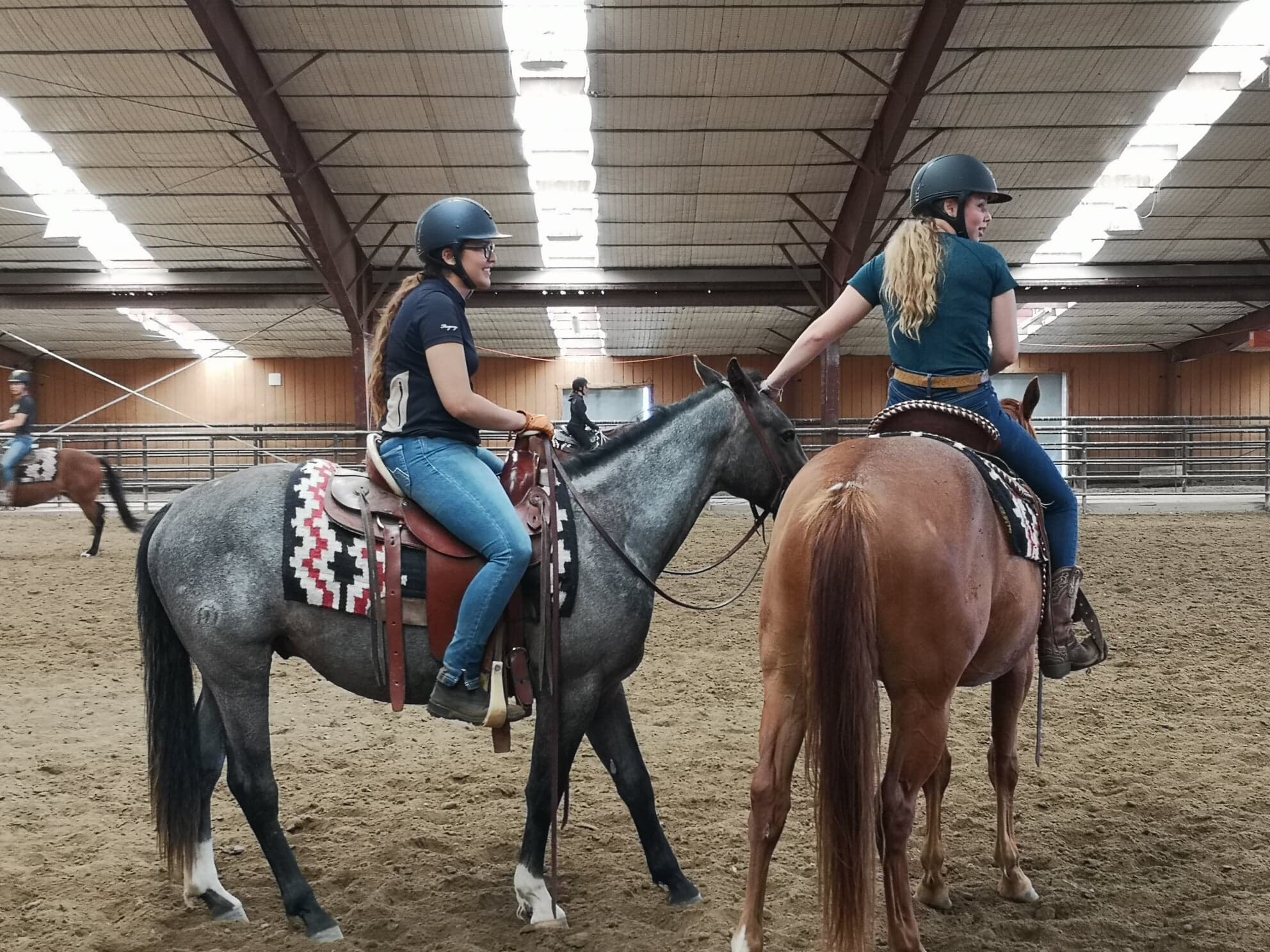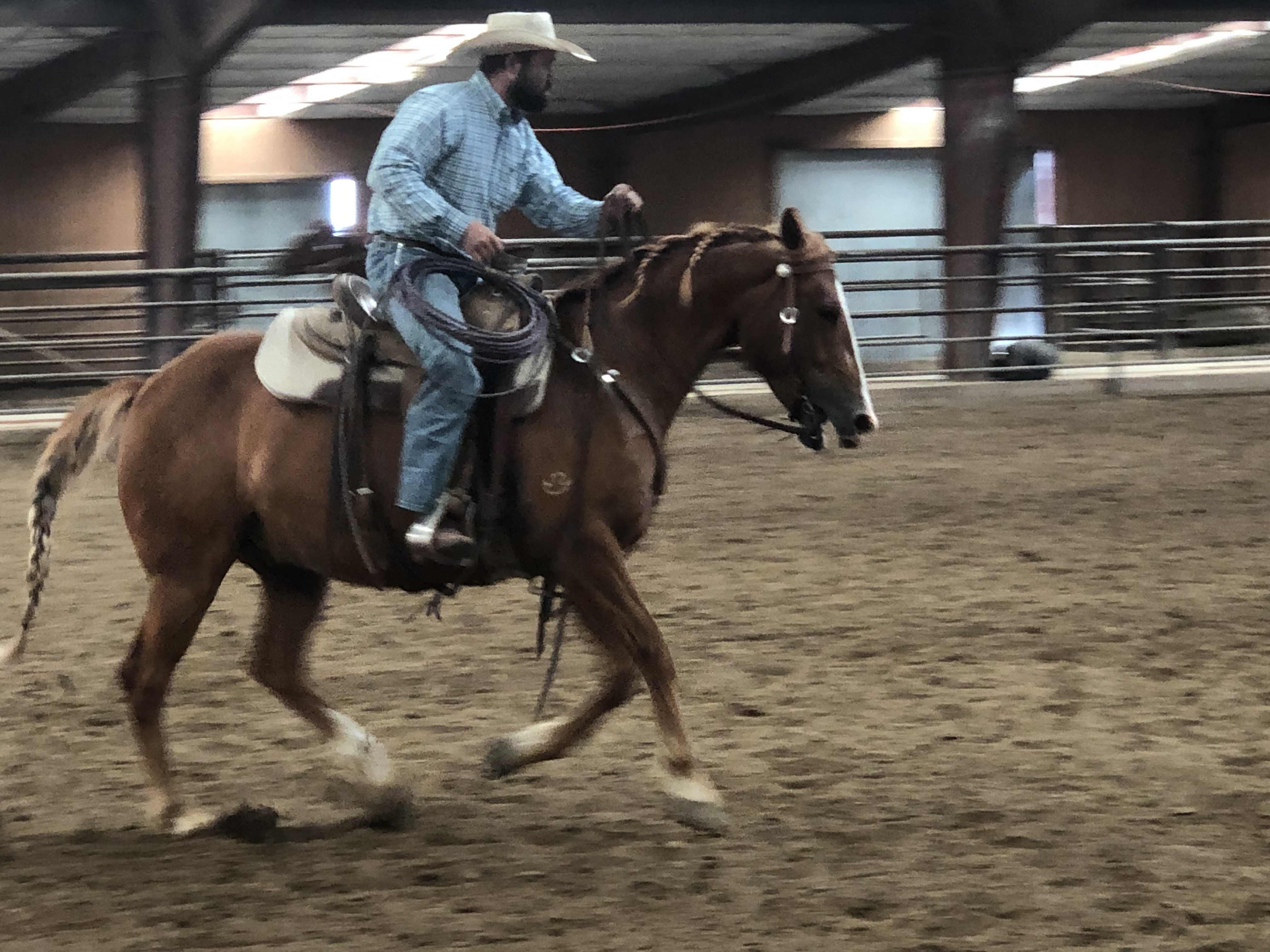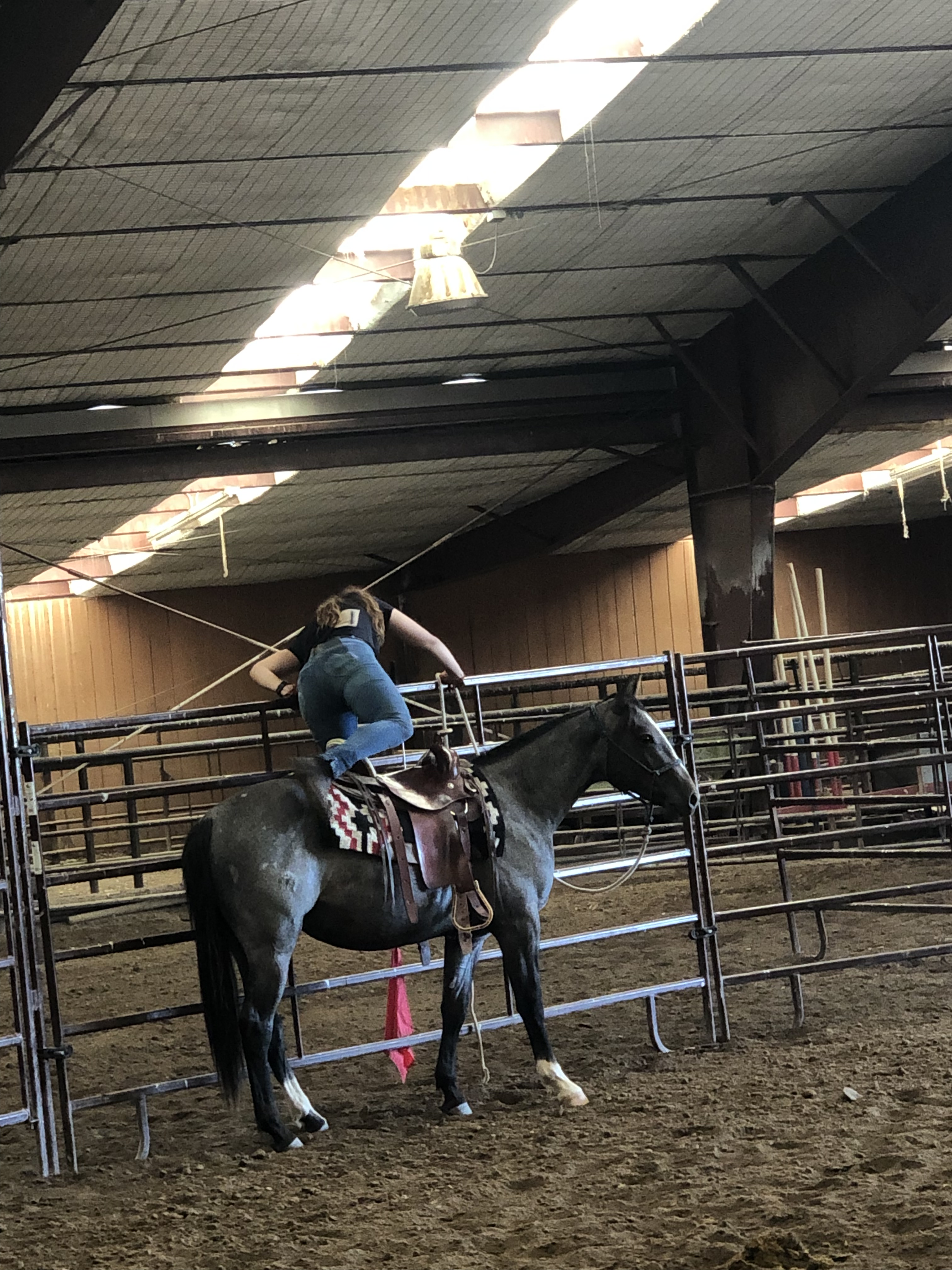 Ce matin, après être chercher des cadeaux pour Eric et Olie à Murdoch’s, base de tout bon cowboy, nous sommes retournés au Haras de la Cense pour faire de l’observation. Leurs étudiantes françaises ont désensibilisé puis monté les poulains de deux ans avant que ceux ci retournent pour un an au près après ce pré débourrage.